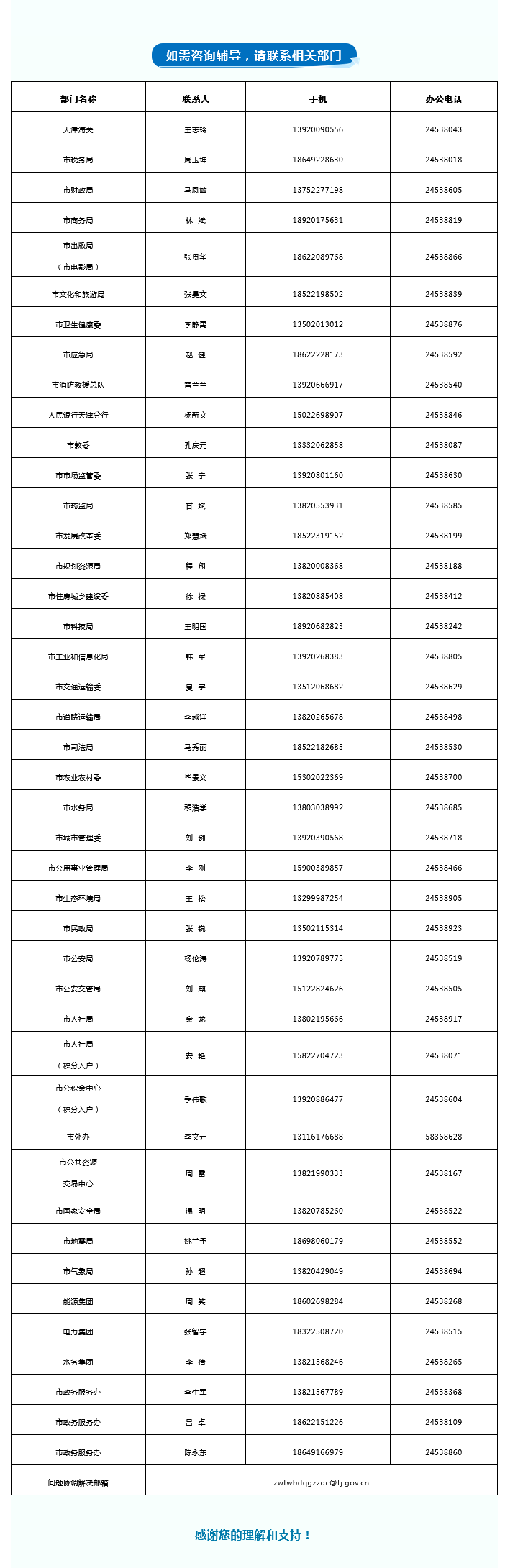 工作时间: | 上午9:00-12:00,下午13:30-17:00。午休期间(12:00-13:30)有关服务窗口、咨询台将安排值班人员为企业群众办事提供服务。 |