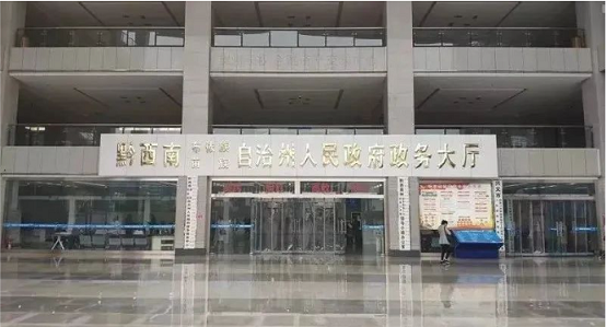 黔西南州人民政府政务服务中心于2010年1月开始筹备建设,办公地址位于兴义市桔山街道办兴义会展中心一、二、三楼,总面积5480平方米。州政务服务中心办事大厅前台设有对外服务窗口89个,43间后台办公室,大厅还设有营商服务中心、投诉窗口、咨询台、大屏幕显示屏、电子触摸屏、一号服务系统(取号、叫号、服务评价)、自助申报区等服务设施。州政务服务大厅进驻部门32个(其中常驻部门16个、联络制部门16个),进驻人员152人。2018年州政府公布权力事项3513项,政务大厅进驻事项386项,其中行政许可183项,行政确认、行政征收、行政给付、其他类权力事项共203项。