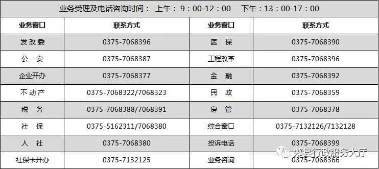 二楼:不动产登记窗口、银龙水务、玺硕热力、供电公司、燃气公司、公安窗口、市场监督管理局(工商)窗口、房管局窗口、人社局窗口(养老、退休)
