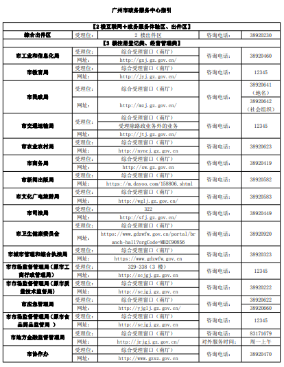 电话: | 020-38920000(大厅办事咨询);38920002(网上办事咨询) |