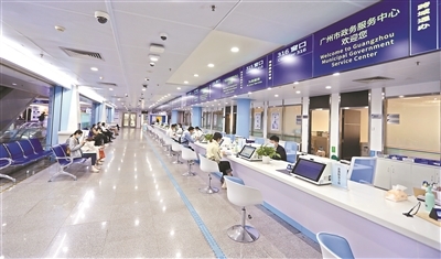 广州市政务服务中心是广州市政府为方便企业和市民办事而设立的集中服务场所,在"集中办理、统一管理、公开透明、信息共享、便民高效"的原则下提供"一站式"和"一条龙"服务。目前市政务服务中心集中了39个市一级管理部门和部分中央驻穗机构,570多名工作人员进驻市政务服务中心,设置服务窗口203个,提供987类行政审批备案类别和相关配套服务事项。