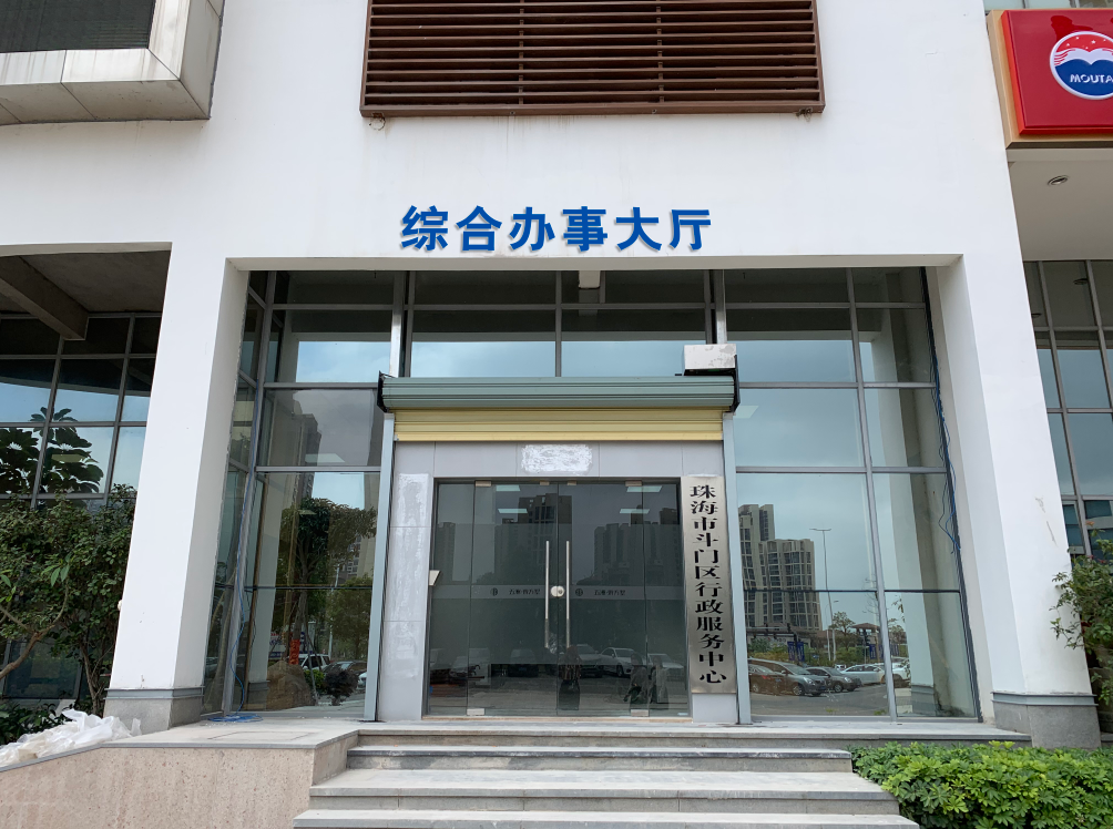 斗门区行政服务中心办事大厅新址(以下简称新址大厅),位于斗门区珠峰大道1288号东方墅商业街。其中,综合办事大厅占地面积200平方米,公安业务办事大厅占地面积400平方米。原斗门区行政服务中心办事大厅的区卫生健康局、区市场监督管理局(仅食品药械监管业务)、区发改局、区住建局(包括人防和交通)、区应急管理局、区农业农村局、区水务局、区气象局、区文化广电旅游体育局、区城市管理综合执法局、珠海市自然资源局斗门分局、供水公司等相关业务,以及原公安业务大厅的居民身份证、居住证(包括港澳台居住证)、印章缴销、养犬登记等业务均已进驻。