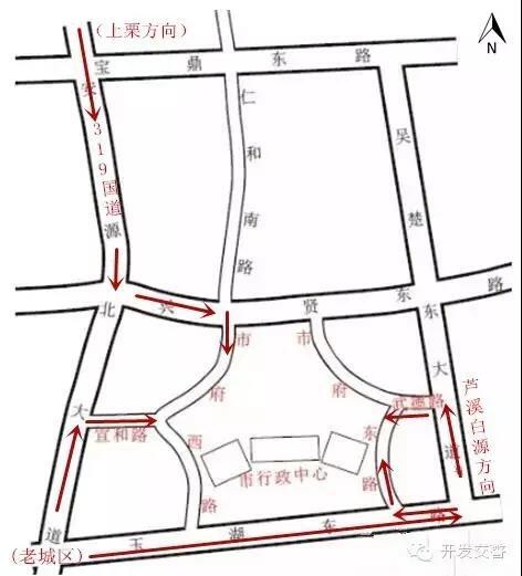为了方便群众出行,缓解交通压力避免拥堵,开发交警大队制作了一张交通温馨提示图,通过周边道路的详细图解,建议大家选择最适合自己的路线进入新市行政服务中心。