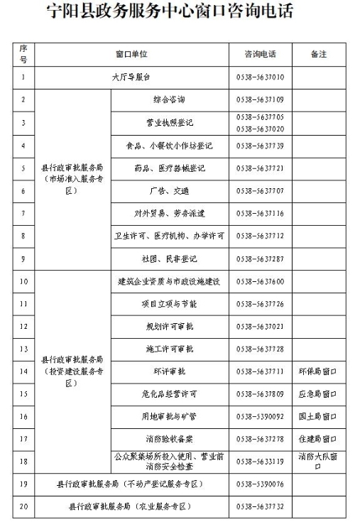 为统筹做好疫情防控和政务服务工作,方便企业群众办事,结合宁阳县县实际,现就全面恢复宁阳县政务服务中心线下窗口服务事项公告如下: