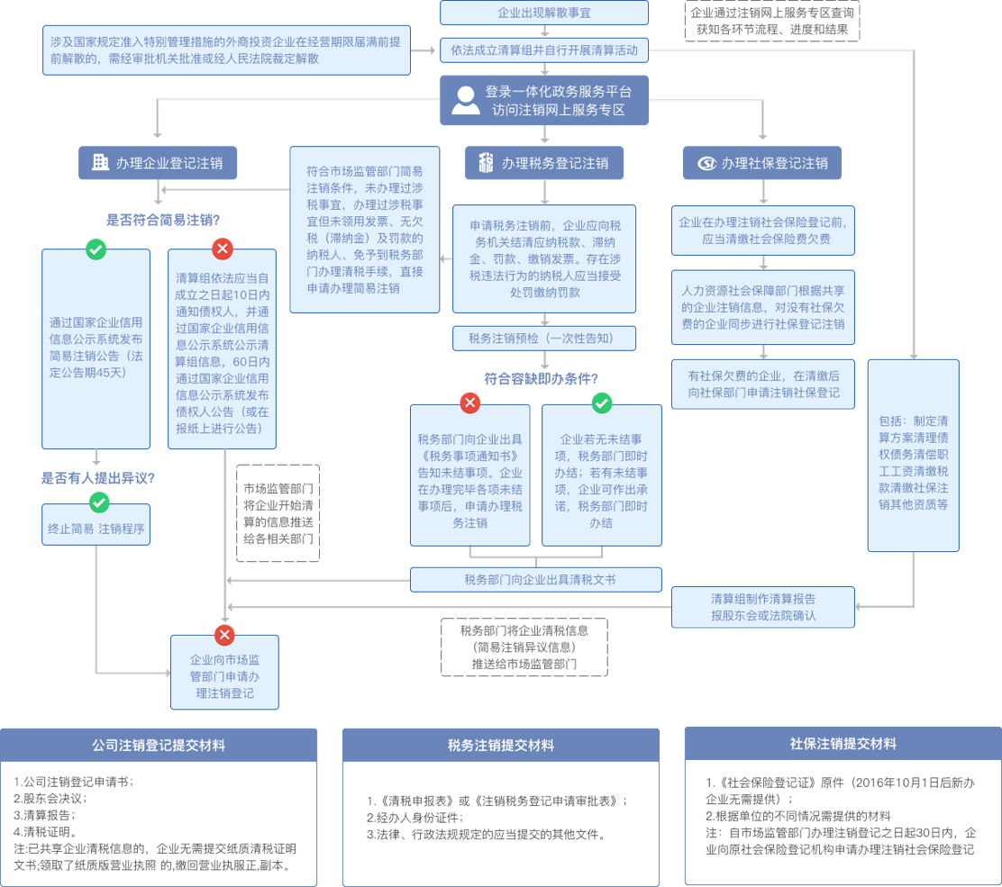 (三)优化企业注销流程。企业通过国家企业信用信息公示系统对外发布债权人公告,或在市场监管部门办理清算组成员备案后,市场监管部门将企业开始清算的信息通过“平台”推送至相关部门。各有关部门对企业注销进行同步指引,将各自办理注销业务的流程、方式和结果通过“平台”告知企业,让企业能够“一网”获知各环节流程、进度和结果,提升企业办事体验。[责任单位:各市(地)人民政府(行署)、相关中省直部门]