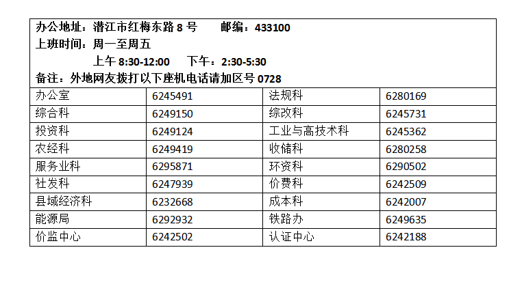 潜江市发展和改革委员会是市政府工作部门,加挂市粮食局牌子。市发展和改革委员会贯彻落实党中央和省委关于发展改革工作的方针政策和市委决策部署,在履行职责过程中坚持和加强党对发展改革工作的集中统一领导。办公地点:园林办事处红梅东路8号,联系方式:0728-6245491。