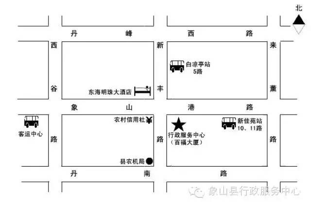 象山县行政服务中心位于位于象山港路与新丰路交叉口东南角(象山港路300号),整个行政服务中心的办公区域分布在大厦的1至4层,并张贴有楼层办公分区指示牌,市民可根据需要到相应的楼层或服务窗口办理业务。